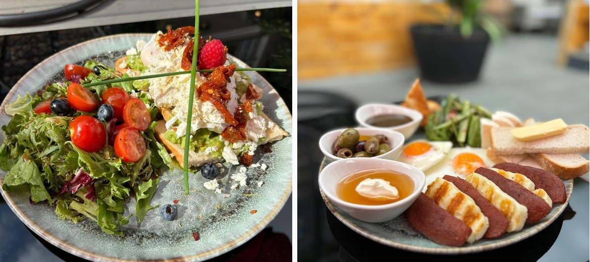 The food is tasty and recommend the halloumi and avocado wrap 💚 great seating inside and out. With a swing chair that a child was already using but would have loved to try it out 😜 decor and music was good. Shout out to the guy who was working the bar today with trendy shorts and a shirt 🤩 he worked so hard especially in the 30 degree heat. He was friendly, smiley and good at his job 🥰 will be back here soon 🥰😘😍 thank you 💚💚💚
